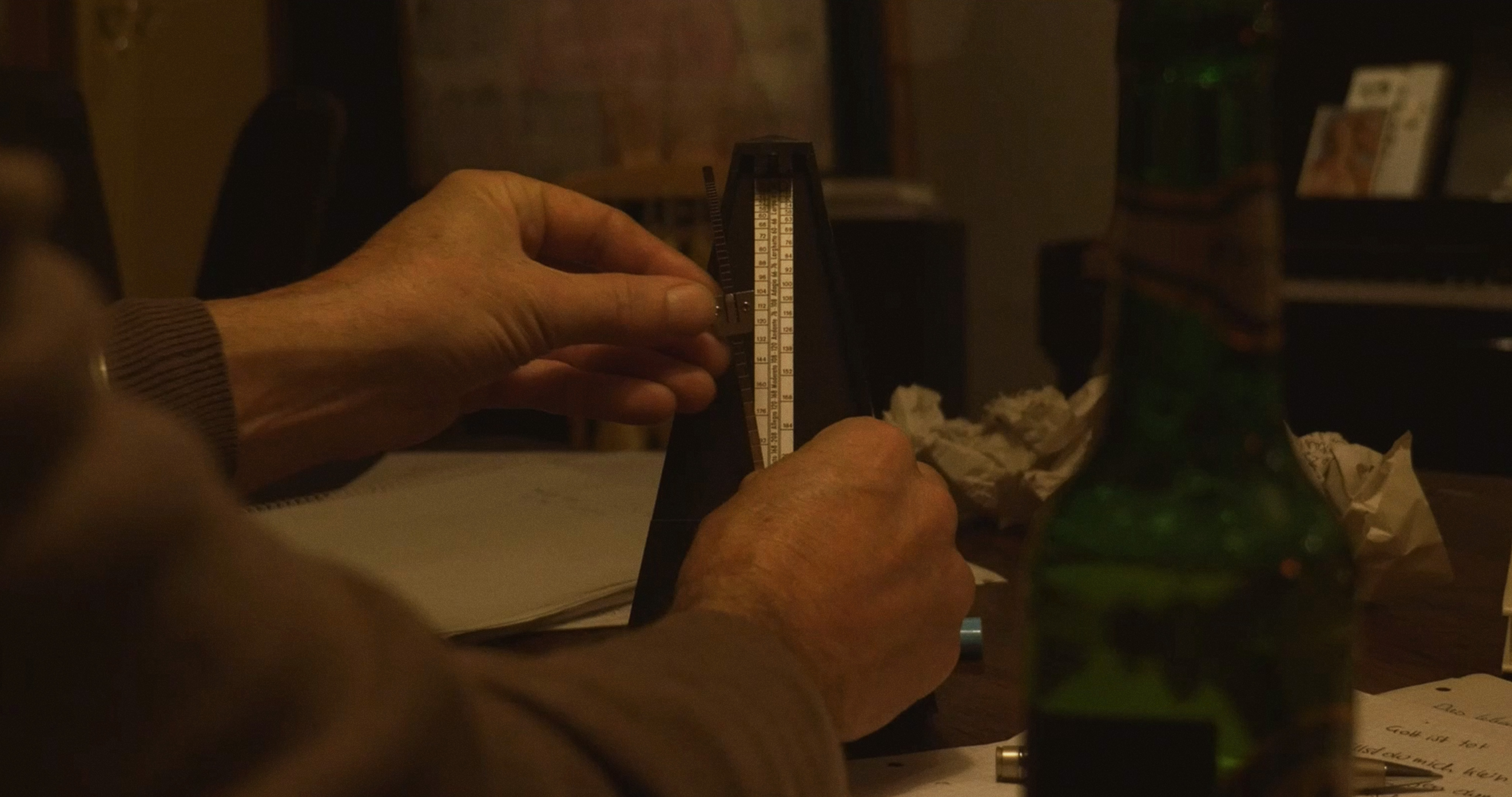 Ein Autor verwendet ein Metronom, um den Rhythmus seiner Erzählung zu bestimmen. Aus Frustration und unter Einfluss von Alkohol lässt er das Metronom immer schneller schlagen, während sich die Erzählung eskalant auf einen Klimax hin entwickelt.
